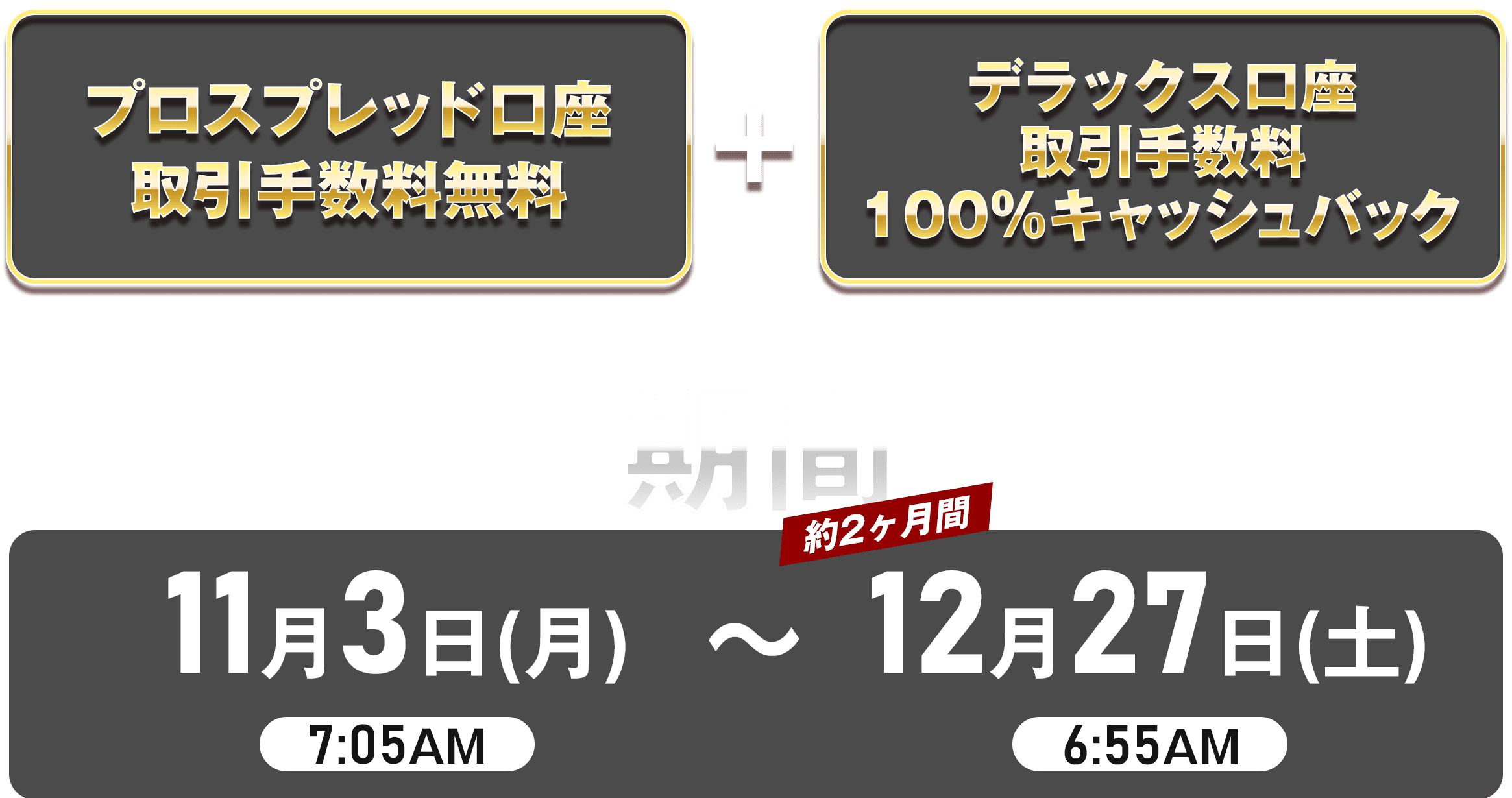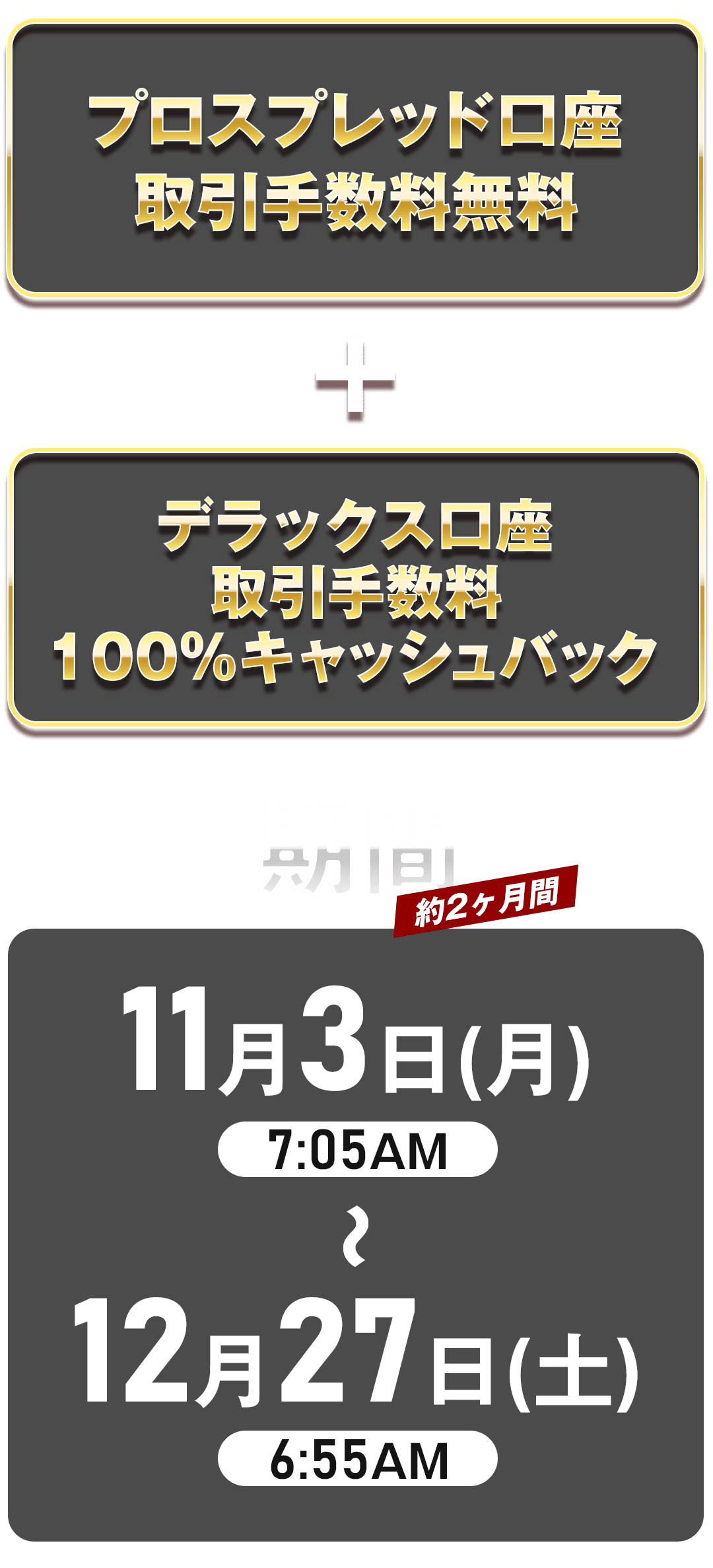 ・本キャンペーンの対象となる取引は、上記期間内の新規注文、および決済注文となります。